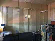The first floor contains classrooms and has had minor alterations to create larger classrooms. It retains two of three sets of timber folding partitions between classrooms, however, these have been moved and installed nearby into later partitions - the original four classrooms have been converted into three. Openings have been made in brick partitions and one cloak room has been incorporated into a classroom by removing the brick partition completely and closing it off from the corridor.[1]