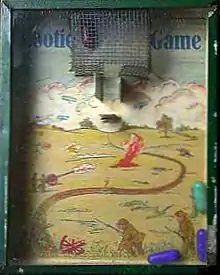 A hand-held game, the Cootie Game, was made by the Irvin-Smith Company of Chicago in 1915; it involved tilting capsules (the cooties) into a trap over a background illustration depicting a battlefield.[6] Other cootie games followed, all involving some form of "bug" or "cootie",[6] until The Game of Cootie was launched in 1948 by Schaper Toys.[7] This game was very successful, becoming an icon;[8] in 2003, the Toy Industry Association included it on its "Century of Toys List" of the 100 most memorable and most creative toys of the 20th century.