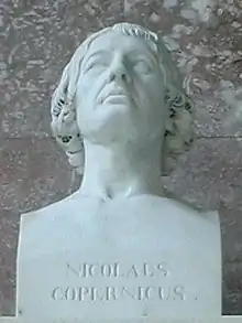 His father was a merchant from Kraków and his mother was the daughter of a wealthy Toruń merchant.[11] Nicolaus was the youngest of four children. His brother Andreas (Andrew) became an Augustinian canon at Frombork (Frauenburg).[11] His sister Barbara, named after her mother, became a Benedictine nun and, in her final years, prioress of a convent in Chełmno (Kulm); she died after 1517.[11] His sister Katharina married the businessman and Toruń city councilor Barthel Gertner and left five children, whom Copernicus looked after to the end of his life.[11] Copernicus never married and is not known to have had children, but from at least 1531 until 1539 his relations with Anna Schilling, a live-in housekeeper, were seen as scandalous by two bishops of Warmia who urged him over the years to break off relations with his "mistress".[12]
