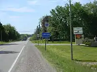 From the CN/VIA Railway, one can see the Quick Feeds Ltd. feed mill after the bridge; the feed mill is owned by Mr. David Quick and currently employs three people.[9] This location is actually where the old Copetown station used to be prior to closing due to lack of service. The centre of Copetown is the four-way stop at the intersection between Highway 52 and Governors Road. The TH&B railway used to run near Copetown by way of Old Highway 99, Slote Road and crossing Highway 52 just 1.5 kilometres (0.93 mi) south of the centre of Copetown.