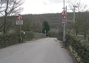 ![]() Looking south along Copley Lane, the bridge over the Sowerby Bridge to Halifax railway line, Copley railway station was east of this bridge. | |