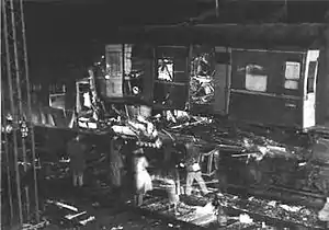The collision killed 18 passengers; 33 other passengers and one railwayman, the guard of the Birmingham train, were seriously injured.[1] All these casualties were in the two rear coaches of the Liverpool train, which were telescoped after a coupling fractured.[1][3]