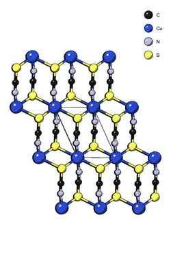 - Smith, D. L.; Saunders, V. I. (15 March 1982). "Preparation and structure refinement of the 2H polytype of β-copper(I) thiocyanate". Acta Crystallographica Section B: Structural Crystallography and Crystal Chemistry. 38 (3): 907–909. doi:10.1107/S0567740882004361.