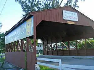 The city, officially chartered on July 10, 1963, was master-planned and primarily developed by Coral Ridge Properties, Inc., which was acquired by Westinghouse in 1966. The city's name is derived from the company's name, and was selected after several earlier proposals had been considered and rejected.[6] Despite the name, there are no natural springs in the city; Florida's springs are found in the central and northern portions of the state.[7]