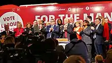 Corbyn was elected Leader of the Labour Party in 2015. The party's membership increased sharply, both during the leadership campaign and following his election.[6] Taking the party to the left, he advocated renationalising public utilities and railways, a less interventionist military policy, and reversals of austerity cuts to welfare and public services. Although critical of the European Union, he supported continued membership in the 2016 referendum. After Labour MPs sought to remove him in 2016 through a formal leadership challenge, he won a second leadership contest. In the 2017 general election, Labour increased its share of the vote to 40%, with its 9.6% vote rise their largest improvement since the 1945 general election. This resulted in a net gain of 30 seats and a hung parliament; but the Conservative Prime Minister, Theresa May, formed a minority government and Labour remained in Opposition. In 2019, after deadlock in Parliament over Brexit, Corbyn endorsed holding a referendum on the withdrawal agreement, with a personal stance of neutrality. In the 2019 general election, Labour's vote share fell to 32%, leading to a net loss of 60 seats and leaving it with 202, its fewest since 1935. Corbyn said he would not lead Labour into the next election, triggering a leadership election in 2020 that was won by Keir Starmer, his Shadow Brexit Secretary.