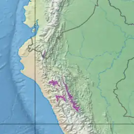 The Cordillera Central páramo is found in the upper regions of the Andes in northern Peru and southern Ecuador. The ecoregion has an area of 1,217,294 hectares (3,008,000 acres).[1][lower-alpha 1] The páramo covers ridges and mountains in the high basins of the Piura and Cajamarca regions of Peru and in the south of Ecuador.[2] The northern part of the ecoregion is surrounded by the Eastern Cordillera Real montane forests ecoregion. Further south it adjoins or is surrounded by Tumbes–Piura dry forests, Marañón dry forests, Peruvian Yungas, Ucayali moist forests, Sechura Desert and Central Andean wet puna.[3]