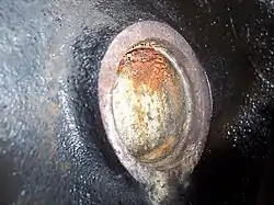 The Welch plug is a type of core plug that is made from a thin disc of metal. The Welch plug is dome-shaped and inserted into the casting hole with the convex side facing outwards.[5] When installed by striking the Welch plug with a hammer, the dome collapses slightly, expanding it laterally to seal the hole. This differs from other dish-shaped core plug designs, which form a seal when their tapered sides are pressed into the casting hole.[6]