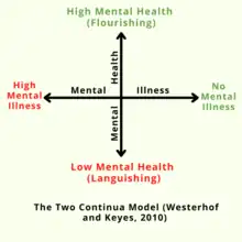 - Keyes, C. L. (2002). "The mental health continuum: From languishing to flourishing in life". Journal of Health and Social Behavior. 43 (2): 207โ222. doi:10.2307/3090197. JSTOR 3090197. PMID 12096700.