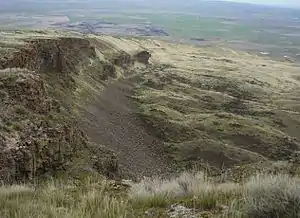 The Corfu Slide is a geological feature located on the north slope of the Saddle Mountains above Crab Creek near the Columbia River in eastern Washington. It consists of 24 separate slides that cover approximately 18-20 square kilometers (7 to 8 miles²)[1] and contains a volume of material of about 1 cubic kilometer.