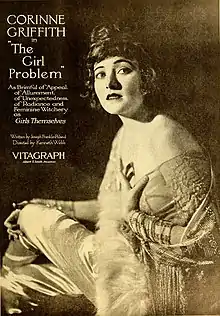 In 1923, after three years of marriage, Griffith divorced Campbell, whom she claimed was an abusive alcoholic.[31] The same year, Griffith left Vitagraph Studios, signing a more lucrative contract of $10,000 a week with First National,[24] where she became one of their most popular stars.[32] Her first film for the studio was Frank Lloyd's Black Oxen (1923), a drama in which she portrayed a mysterious Austrian countess. The film, in which Griffith co-starred with Conway Tearle and Clara Bow, became a hit.[33]