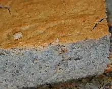 Unlike fried variants of cornbread, baked cornbread is a quick bread that is dependent on an egg-based protein matrix for its structure (though the addition of wheat flour adds gluten to increase its cohesiveness). The baking process gelatinizes the starch in the cornmeal, but still often leaves some hard starch to give the finished product a distinctive sandiness not typical of breads made from other grains.