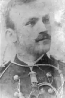 After a nine-year tour of duty in the Philippines, Smith was brought back to the U.S. in 1912 and in fall transferred to the 4th U.S. Cavalry Regiment at Fort Huachuca in his home state of Arizona.[13] From December 1912 to December 1914 he was reassigned to the 5th U.S. Cavalry as commanding officer of its Troop G at Huachuca, when the 4th U.S. Cavalry was sent for rotation to Hawaii. On March 13, 1913, he formally accepted the surrender of Colonel Emilio Kosterlitzky, commander of Mexican federal forces of Sonora and his 209 followers in Nogales, Arizona after General Álvaro Obregón had defeated him days earlier.[2][3][4] The surrender was conducted in a formal ceremony, with Kosterlitzky presenting Smith his sword. The two officers later became lifelong friends.[14]