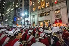 The Sy Katz '31 Parade is a biennial march in New York City, which takes place on dates when the Cornell football team travels to Columbia.[12] After the game, the Big Red Marching Band and cheerleading squad lead Cornell alumni, family, and friends down a short stretch of Fifth Avenue, ending with a concert in front of the Cornell Club of New York at 6 East 44th Street.[12][13] The tradition was started in 1972 by Seymour "Sy" Katz '31 and was the length of one city block.[12] The 2016 parade was headed by Provost Michael Kotlikoff as grand marshal.[12] The 2018 parade, led by Cornell president Martha E. Pollack, marched from Rockefeller Center to the Cornell Club, attended by some 1,000 Cornell alumni, family members and friends.[14]