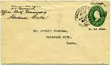 1899 postal stationery envelope from U.S. occupied Cuba with an imprinted partial request corner card.