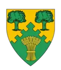 Per chevron embattled Or and Vert, in chief two oak trees and in base a garb counterchanged.[12] | |