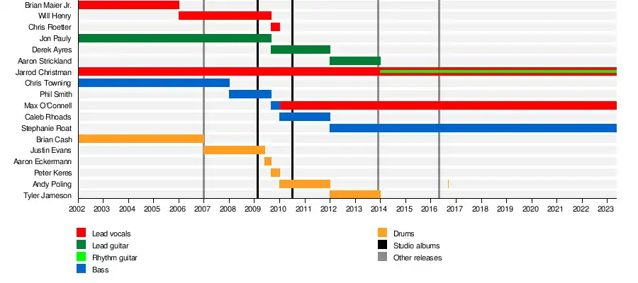 - Jarrod Christman - rhythm guitar, clean vocals (2002–present), lead guitar (2014-present)
