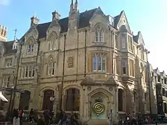 The Corpus Clock, also known as the Grasshopper clock, is a large sculptural clock at street level on the outside of the Taylor Library at Corpus Christi College, Cambridge University, in the United Kingdom, at the junction of Bene't Street and Trumpington Street, looking out over King's Parade. It was conceived and funded by John C. Taylor, an old member of the college.