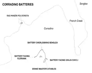 ![]() Map of the Corradino Batteries | |
