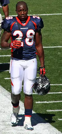 Correll Buckhalter (/kəˈrɛl/; born October 6, 1978) is a former American football running back who played for eight seasons in the National Football League (NFL). After playing college football for Nebraska, he was drafted by the Philadelphia Eagles in the fourth round of the 2001 NFL Draft.[1] He played for the Eagles from 2001 to 2008, with three seasons lost due to injury. He played for the Denver Broncos for two seasons (2009 and 2010).