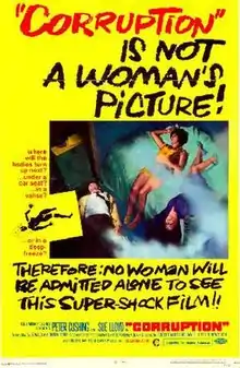 Corruption is a 1968 British horror film directed by Robert Hartford-Davis from a screenplay by Derek Ford and Donald Ford, and featuring Peter Cushing, Sue Lloyd, Noel Trevarthen, Kate O'Mara, David Lodge, and Antony Booth.[1]