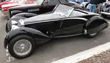 At least 14 Bugatti Type 57s were furnished with Corsica bodies. One of the most notable Corsica bodied Type 57 cars was made using a chassis with parts from a famous Bugatti racing car. Bugatti was known for reusing and re-purposing chassis from their racing cars, then shipping the bare chassis to a customer for a new custom body. The Corsica Bugatti Type 57 Surbaisse 3.3-Litre Four-Seat Sports (1937) was made with an English style sporting body, completely unlike the typical Type 57 sporting bodies from continental European coachbuilders. And the chassis rails have been identified as the very same parts used in a Le Mans Type 57 "Tank" Streamliner.[1]