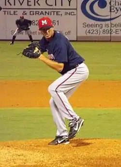 Prior to playing professionally, Gearrin attended Rhea County High School, Young Harris College, and Mercer University. In 2006, he played collegiate summer baseball with the Cotuit Kettleers of the Cape Cod Baseball League and was named a league all-star.[1][2][3] Gearrin was listed as a top 30 prospect in the Cape Cod League in 2006.[4] That summer, he boasted a 1.67 ERA, striking out 41 batters in 27 innings while going 2-1 and having 8 saves. In that same summer, his pitches were clocking between 88 and 89 miles per hour. In 2007, Gearrin's junior season at Mercer, he went 4–3 with a 2.44 ERA in 26 relief appearances. He had 13 saves and 65 strikeouts in 44 innings of work, allowing only 15 hits. Gearrin was then drafted by the Braves in the fourth round of the 2007 amateur draft.