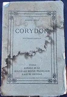 Corydon is a book by André Gide consisting of four Socratic dialogues on homosexuality. The name of the book comes from Virgil's pederastic character Corydon. Parts of the text were separately privately printed from 1911 to 1920,[1] and the whole book appeared in its French original in France in May 1924 and in the United States in 1950. It is available in an English translation (ISBN 0-252-07006-2) by the poet Richard Howard.