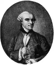 He met Voltaire in Berlin in 1750 and was taken on as his secretary, alongside Joseph Du Fresne de Francheville (son of another Joseph Du Fresne de Francheville), in April 1752.[1] When Voltaire left the service of Frederick the Great in 1753 Collini accompanied him, and was confined with him and Madame Denis on Frederick's orders for three weeks in Frankfurt.[2] In 1755 the young Jean-Louis Wagnière was made his assistant and, just over a year later, took his place when Collini was dismissed from Voltaire's service for insulting Madame Denis.[3]