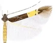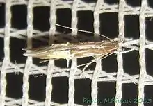 Cosmopterix attenuatella is a moth of the family Cosmopterigidae described by Francis Walker in 1864. It is widely distributed in the tropics and subtropics of both the Old and New World, including the United States, Bermuda, the Cayman Islands, Virgin Islands, Dominica, Jamaica, Puerto Rico, Trinidad and Tobago, Costa Rica, Brazil, Ecuador, Peru, Argentina, the Canary Islands, Madeira, the Galápagos Islands, Cook Islands, Taiwan, Australia, New Zealand,[2] Madagascar, Seychelles, Mauritius and Saint Helena.