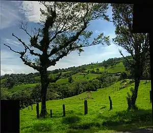 The Costa Rican seasonal moist forests ecoregion (WWF ID: NT0119) covers the Pacific Slope of the volcanic mountain range of northwestern Costa Rica and the extreme south of Nicaragua. The area has a distinct dry season during which the characteristic deciduous trees drop their leaves. The forests themselves have been highly degraded in the past by human conversion to agriculture and settlement. The Costa Rican capital city of San Jose is in the middle of this ecoregion.[1][2][3][4]