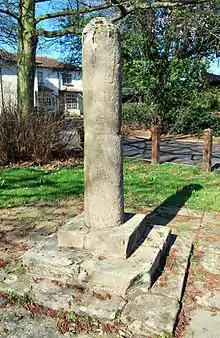 The epitaph is often referred to as the Cotgrave Cross, as is a six-foot-high monument at the east end of the church. With later, partly ashlar construction parts from the 20th century and parts from the 16th,[11] it is somewhat of a mystery, as it is thought of as ancient, yet does not appear on photographs or pictures before the early 20th century. The site is near an important old junction, but there is no surviving medieval stonework evident. There were ideas of moving the war memorial to that site and the Cross moved perhaps to the country park,[12] but these were dismissed as too costly.