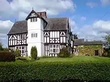 Located here also is Clanford Hall, a three-storey, half-timbered Tudor mansion in fine condition now used as a farmhouse. The building, dated 1684, is listed Grade II* and is a good example of 17th century vernacular architecture of the area. It is timber framed with a tiled roof and brick stacks, with two storeys and an attic, and four-storeyed on the East. It is restored in brick and colour-washed, with wood finials to gables and ornamental timbering at front and restored timbering at rear. There are casements and wood mullioned windows with modern leaded lights. The house has exposed ceiling beams.[1]