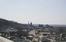 Council Bluffs is a city in and the county seat of Pottawattamie County, Iowa, United States.[4] It is the most populous city in Southwest Iowa, as well as the third largest and a primary city of the Omaha-Council Bluffs Metropolitan Area. It is located on the east bank of the Missouri River, across from Omaha, Nebraska. Until about 1853 Council Bluffs was known as Kanesville.[5] Kanesville was the historic starting point of the Mormon Trail. Kanesville is also the northernmost anchor town of the other emigrant trails because there was a steam-powered boat which ferried the settlers' wagons and cattle across the Missouri River.[5] In 1869, the first transcontinental railroad to California was connected to the existing U.S. rail network at Council Bluffs.