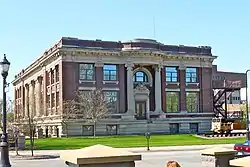 Downtown declined as the city's primary retail center after the 1955 completion of the Broadway Viaduct, 1970s urban renewal, and the 1984 opening of the Kanesville Boulevard U.S. Route 6 bypass. Remaining buildings of note include the 1959 Council Bluffs Post Office and Federal Building at 6th Street, the 1986 "Red" Nelson Building, the 501 Main Building, the substantially altered 1909 City National Bank Building, and the 1968 First Federal Building. The 1947 State Savings Bank Building at 509 West Broadway and the seven-story 1924 Bennett Building at 405 West Broadway are both listed on the National Register of Historic Places. The 100 Block of West Broadway is a historic district listed on the National Register of Historic Places and the 1892 Broadway United Methodist Church at West Broadway and 1st St. remains a prominent community landmark.