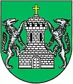The Counts of Ribeira Grande used the heridtary coat-of-arms of the Counts of Vila Franca, that included the silver tower, surmounted by gold cross, and flanked by two grey wolves. Their motto at the time was PELA FÉ, PELO PRÍNCIPE, PELA PÁTRIA (For the faith, for the prince, for the fatherland).[2]