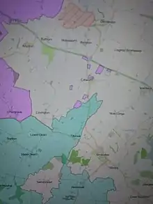 Many smaller exclaves were overlooked in the drawing up of the 1832 schedule and so were ignored in the 1844 Act, for example the small exclaves of the Buckinghamshire parishes of Drayton Beauchamp and Marsworth in Hertfordshire.[21][22] Similarly, the chaotic meeting of Nottinghamshire, Lincolnshire and Yorkshire at Auckley and Misson was ignored despite the Ordnance Survey First Series 1841 not attempting to show boundaries (and giving despairing notes instead, e.g: "Township of Auckley in the Counties of York and Nottingham").[23]