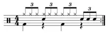Double two-step, also referred to as triple two-step (and so designated by the UCWDC,[17] which classifies it as a separate competitive dance style), is usually danced to slower music. The two slow steps are replaced by two sets of triple steps. By contrast, the two quick steps are now slow steps. One way to count double two-step is "1 and 2", "3 and 4", step, step. The count is the same as that of triple count East-coast swing.