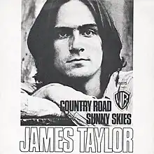 "Country Road" is a song written and performed by American singer-songwriter James Taylor, released in February 1971 by Warner Bros. Records. It is the third single from Taylor's second studio album, Sweet Baby James. "Country Road" is also featured on James Taylor's 1976 Greatest Hits record. The song has been played at most of his concerts since 1970. Randy Meisner, later of the Eagles, played bass on the album version.