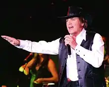 The country music scene of the 1940s until the 1970s was largely dominated by Western music influences, so much so that the genre began to be called "Country and Western".[80] Even today, cowboy and frontier values continue to play a role in the larger country music, with Western wear, cowboy boots, and cowboy hats continues to be in fashion for country artists.[81]