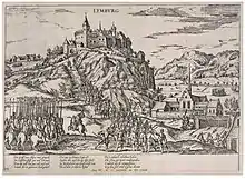 Frederick, Count of Altena Isenberg. He completed the castle of Isenberg on top of the mountain Isenberg. A conflict arose with his uncle Archbishop of Cologne, Engelbert II of Berg about the management of the monastic property when he wanted to expropriate his guardianship.[14] On his way back from the town of Soest (located to the east of Dortmund) where uncle and nephew had negotiated in vain, to Cologne, Frederik raided his uncle Engelbert nearby Gevelsberg. In happened in the late afternoon of the 7th of November 1225, with the help of allies who also had serious grievances against the Archbishop's practices. The intention was to kidnap him as a hostage to castle Isenberg. A means of breaking a deadlock over disputed rights more often tried at that time. Accepted as long as it was a success. But in this case ended in tragedy. Archbishop Engelbert was unluckily killed. This event was of far-reaching significance to German history. Frederik fled and found temporary protection with an ally, count Otto of Tecklenburg.[15] Frederick of Isenberg was outlawed and excommunicated. He was stripped of all offices and stewardships and his personal wealth was confiscated. In the winter of 1225/1226 the new Archbishop of Cologne, Heinrich von Müllenark, besieged and destroyed his castle Isenberg. (At present the ruin is a national monument). His cousin, Adolf von der Mark, was attributed large portions of Frederick's possessions. Frederik's wife, duchess Sofie of Limburg, found shelter at the castle of Limburg (Veste), where her brother duc Hendrik of Limburg received her with the children. Sofia would die a year later with her youngest child. Traumatized after supporting her husband in Cologne during the brutal execution.