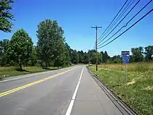After crossing the Lamington River, CR 523 enters Bedminster Township in Somerset County, passing through farmland as it intersects CR 665. From here, the route turns north-northeast and passes through woods and the entrance to Trump National Golf Club Bedminster before heading back into a mix of farms, woods, and homes. Residential development increases as the road comes to a junction with US 206. After passing a mix of homes a businesses, CR 523 ends at the US 202 (Hillside Avenue) intersection.[1][4]