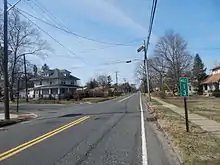 Upon crossing the Pennsauken Creek, CR 543 enters Palmyra in Burlington County and immediately comes to an interchange with Route 73. The route intersects CR 601 and turns northwest onto Public Road, passing residential and industrial areas. CR 543 crosses the River Line and immediately turns northeast onto Broad Street. Broad Street continues southwest from here towards Route 73 and is signed as a portion of CR 543. The mainline of CR 543 passes homes, running immediately north of the railroad tracks. The road enters the commercial downtown of Palmyra and crosses CR 607 near the Palmyra Station of the River Line before reaching the CR 602 junction. The route gains a center left-turn lane and enters residential areas again and crosses into Riverton at the Elm Avenue intersection, coming to the CR 603 junction near the Riverton Station. After crossing the Pomeston Creek, CR 543 enters Cinnaminson Township and becomes Saint Mihiel Drive, running through residential and industrial areas, passing the Cinnaminson Station. The road passes more industry as a four-lane undivided road, continuing into Delran Township, where it passes a marina to the north. The route passes some homes and businesses before entering Riverside Township at the CR 604 intersection. In Riverside Township, the route passes more commercial developments, becoming Lafayette Avenue at the Fairview Street intersection, which narrows to two lanes. CR 543 turns north onto Pavilion Avenue near the Riverside Station and passes through residential and commercial areas.[1][2]
