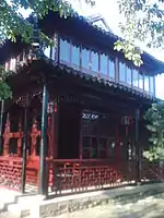 Based on a pun alluding to the love between herder boy and weaver girl, it is the primary Structure consisting of five bays and two stories. It is adjoined to Studio of the Returned Inkslab and Collecting Fragrance Hall. |