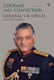 Courage and Conviction: An Autobiography is an autobiographical book by Indian General Vijay Kumar Singh written with Shiv Kunal Verma.[1] It was first published by Aleph Book Company in 2013.[2] In it, Singh criticises various situations in which he was involved, including alleged corruption in the Indian government and the role of Indira Gandhi in Operation Bluestar.[3] In a recent interview with OPEN, an online portal and an Indian magazine, Singh said that his book might make people who work in the government become unhappy with him.[4]