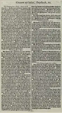 - See digitised copies from 1618 to 1670 of Courante uyt Italien, Duytslandt, &c. at The European Library Historic Newspapers and at Delpher