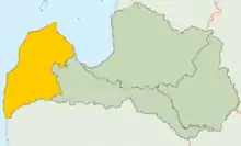 It is bordered by the Baltic Sea in the West, the Irbe Strait in the North and the Gulf of Riga in the East. It covers northwestern Latvia.