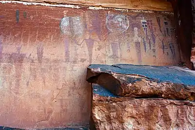 The Courthouse Wash Pictographs are a series of large pictographs created over a long period of time, located on a sheltered sandstone wall at the mouth of Courthouse Wash, Arches National Park in Grand County, Utah, United States, just north of Moab, that is listed on the National Register of Historic Places (NRHP).[1]