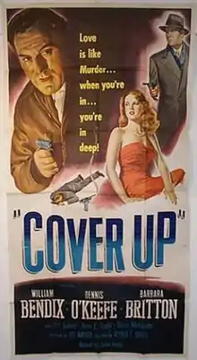 Cover Up is a 1949 American film noir mystery film directed by Alfred E. Green starring Dennis O'Keefe, William Bendix and Barbara Britton. O'Keefe also co-wrote the screenplay, credited as Jonathan Rix. The murder mystery takes place during the Christmas season.
