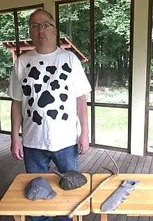 "Cow Tools" is a cartoon from The Far Side by American cartoonist Gary Larson, published in October 1982. It depicts a cow standing behind a table of bizarre, misshapen implements with the caption "Cow tools". The cartoon confused many readers, who wrote or phoned in seeking an explanation of the joke. In response to the controversy, Larson issued a press release clarifying that the thrust of the cartoon was simply that, if a cow were to make tools, they would "lack something in sophistication".[1] It has been described as "arguably the most loathed Far Side strip ever" while also becoming a popular internet meme.[2]