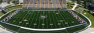 Cowboy Stadium is a 17,610-seat multi-purpose stadium in Lake Charles, Louisiana. It is home to the McNeese Cowboys football team, and is affectionately referred to as "The Hole". It was transformed for the 2008 season to artificial turf. The playing surface is named Louis Bonnette Field, in honor of McNeese's longtime sports information director. Louis' son, Matthew, succeeded him in the post and continues to hold it as of July 2016. The playing surface was replaced prior to the 2018 football season with Hellas Matrix turf. The $650,000 new surface as well as drainage improvements were funded by the same donor, Robert Noland, as for the 2008 installation.[3][4]